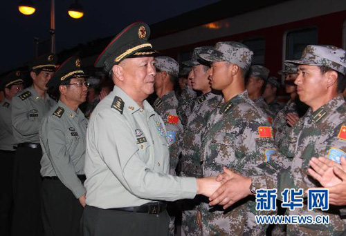 參加“和平使命-2010”上海合作組織成員國武裝力量聯(lián)合反恐軍事演習(xí)的中方陸軍戰(zhàn)斗群第一梯隊(duì)正乘坐軍列一路西行,前往位于哈薩克斯坦南部的演習(xí)地域。