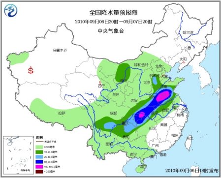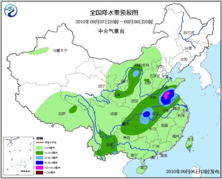 6日20時至7日20時,新疆南疆西北部、青海東部、西藏東部和南部、西北地區(qū)中東部、內(nèi)蒙古中西部、華北、黃淮、江淮、江漢、江南西北部、西南地區(qū)及廣西、廣東西南部、海南等地有小到中雨或陣雨,其中,山東中南部、安徽北部、江蘇北部、河南東部和南部、湖北中西部、重慶中東部、貴州北部、湖南西北部以及川西高原東南部、河北西南部等地有大雨或暴雨,湖北西南部、河南中部偏東地區(qū)、山東西南部、安徽北部、江蘇西北部等地局部有大暴雨;上述部分地區(qū)并伴有短時雷雨大風(fēng)等強(qiáng)對流天氣。新疆南部、內(nèi)蒙古大部、東北大部、華北、黃淮東部等地有4級左右偏北或偏東風(fēng);南疆盆地的部分地區(qū)有揚(yáng)沙或浮塵天氣。受“瑪瑙”、西南季風(fēng)和冷空氣的共同影響,渤海、黃海北部的部分海域、黃海中部和南部偏東海域、東海東北部海域、臺灣以東洋面將有6~8級大風(fēng),“瑪瑙”中心經(jīng)過的附近海域的風(fēng)力將有9~10級,陣風(fēng)可達(dá)11~12級。