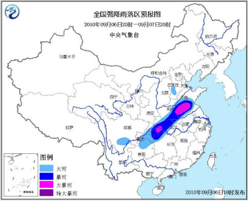 中新網(wǎng)9月7日電 據(jù)中國氣象局網(wǎng)站報道,6日,中國黃河流域到長江流域之間的大部分地區(qū)出現(xiàn)明顯降雨天氣。預(yù)計,6日夜間到7日白天,河南、安徽、江蘇及湖北局地將有大暴雨。