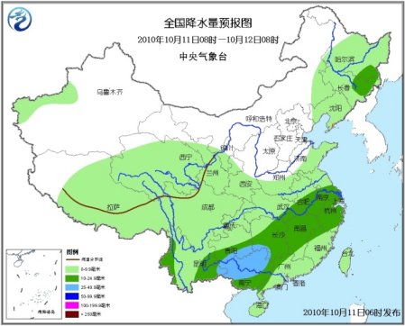 中新網(wǎng)10月11日電 據(jù)中央氣象臺預(yù)報,未來三天,新疆西部、西藏中東部、青海大部、內(nèi)蒙古東部、東北大部、川西高原北部等地有小到中雨(雪)或雨夾雪,西北地區(qū)東南部、黃淮南部、江淮、江漢、江南、華南、西南等地有小到中雨或陣雨,其中,貴州大部、廣西中北部、湖南北部、湖北南部、重慶東南部、浙江中北部等地有中到大雨,上述地區(qū)局部并伴有短時雷雨大風等強對流天氣。