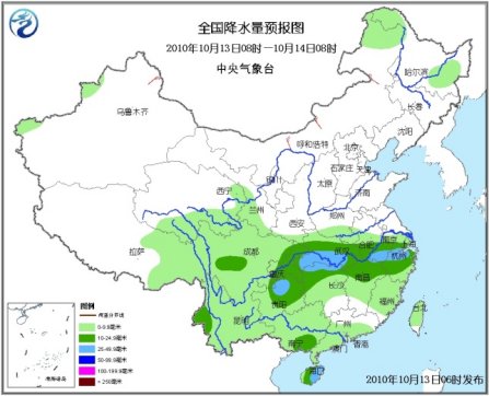中新網(wǎng)10月13日電 據(jù)中央氣象臺(tái)預(yù)報(bào),未來三天,中國(guó)南方大部地區(qū)將以陰雨天氣為主,其中,四川南部、貴州北部、云南西北部、湖南北部、湖北南部、江西東北部、安徽南部、浙江北部、海南大部、臺(tái)灣東部等地有大雨或暴雨,上述地區(qū)局部并伴有短時(shí)雷雨大風(fēng)等強(qiáng)對(duì)流天氣。此外,新疆西部山區(qū)、西藏中東部、青海東部和南部、內(nèi)蒙古東北部、東北中北部、甘肅南部、川西高原北部等地還將有小到中雨(雪)或雨夾雪天氣。