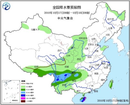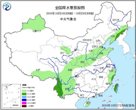 中新網10月17日電 據中央氣象臺預報,受冷暖空氣共同影響,未來三天,新疆北部、西藏中東部、內蒙古中部、東北大部等地將有小到中雨(雪)或雨夾雪,西北地區(qū)東部、華北、黃淮大部、西南地區(qū)等地有小到中雨,其中,云南北部、四川南部、貴州北部等地的部分地區(qū)有大雨,局地有暴雨。另外,今天,海南大部仍有大到暴雨,局地有大暴雨。