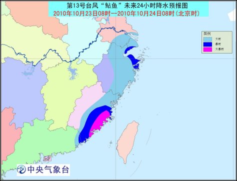 受“鲇魚”和冷空氣的共同影響,23日8時至24日8時,東海大部海面、臺灣以東洋面、巴士海峽、巴林塘海峽、廣東東部沿海、浙江沿海、臺灣沿海將有7-8級大風,陣風9-10級,福建沿海將有9-10級大風,陣風可達11-12級;臺灣海峽、南海東北部偏北海域的風力有9-11級,陣風可達12-13級;“鲇魚”中心經(jīng)過的附近海面和地區(qū)風力可達12-13級,陣風可達14-15級;江蘇南部、上海、浙江中東部、福建中東部、廣東東部等地有大到暴雨,福建東部沿海的局地有大暴雨。