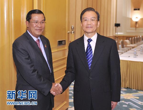 溫家寶說,中柬兩國關(guān)系正進(jìn)一步發(fā)展。2006年我訪問貴國時(shí),兩國決定建立全面合作伙伴關(guān)系。這把兩國關(guān)系推進(jìn)到一個(gè)新階段。中柬友誼經(jīng)歷了時(shí)間的考驗(yàn),在關(guān)鍵時(shí)期和在重大問題上,我們得到了貴國的寶貴支持。在這方面,首相表現(xiàn)出了政治家的堅(jiān)定意志。我很愿意就中柬雙邊關(guān)系和雙方共同關(guān)心的問題和首相交換意見。
