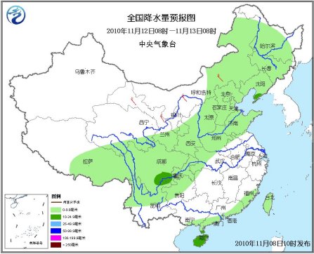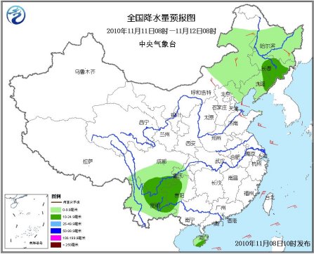 11日08時至12日08時,內(nèi)蒙古東部、東北地區(qū)有小到中雪,其中東北地區(qū)南部的部分地區(qū)有大到暴雪;西南地區(qū)東部有小到中雨;華北、東北等地有4-5級風(fēng)。