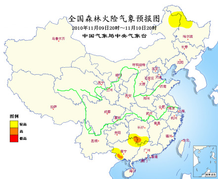 此外,干燥少雨的天氣同樣也使得森林火險氣象等級升高。中央氣象臺預計,11月9日20時至11月10日20時,黑龍江西北部、內(nèi)蒙古東北部、湖南南部、廣東北部、廣西東北部和西南部的部分地區(qū)森林火險氣象等級較高,其中,湖南西南部、廣西東北部和西南部的局部地區(qū)森林火險氣象等級高,請當?shù)赜嘘P(guān)部門注意防火。