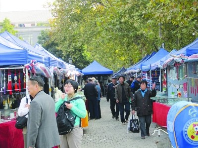 昨天上午,記者來(lái)到山巷廣場(chǎng),發(fā)現(xiàn)這里帳篷如林,各種奇石玉器琳瑯滿目,眾多市民參觀購(gòu)物。一位來(lái)自遼寧的王姓商販告訴記者,是一位姓劉的人主動(dòng)發(fā)短信組織他們來(lái)此擺攤設(shè)點(diǎn)進(jìn)行玉器展銷的,每個(gè)攤位交納1000元。記者在一位遼寧女?dāng)傊鞯氖謾C(jī)上看到該短信:“鎮(zhèn)江首屆奇石玉器展在大西路山巷廣場(chǎng)舉辦,緊鄰富人區(qū),展費(fèi)1200元”。攤主們說(shuō),他們已經(jīng)將每個(gè)攤位一至兩千元的租金交給了劉某,劉某說(shuō)罰款已交給城管了,讓他們放心大膽擺攤。