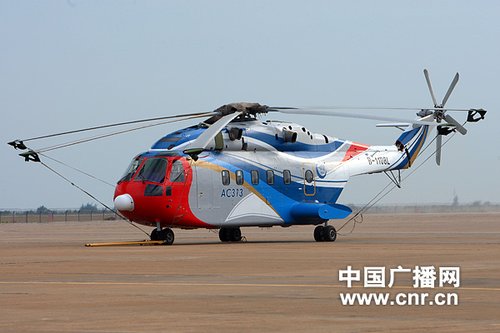 中航生產(chǎn)的我國最大的直升機(jī)AC313將首次在航展亮相并參加飛行表演(中廣網(wǎng)記者邱翔 攝)