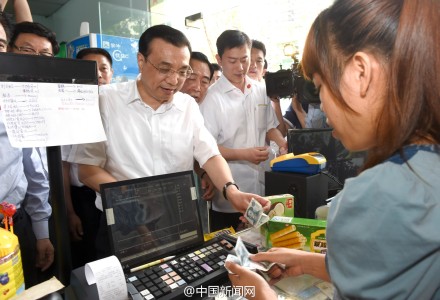 臨走前李克強說,耽誤你做生意了,來了就消費一下,說著便掏錢買了一罐椰子脆片和一盒蛋卷,共計19元。