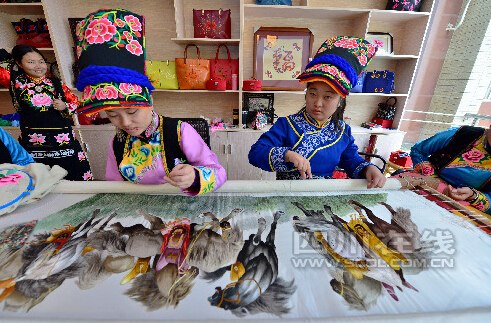 記者:你們的繡品是通過公司在市場(chǎng)銷售,你們準(zhǔn)備一直做這份工作嗎?