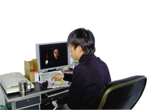11時(shí)15分,未到午休時(shí)間,部分工作人員已經(jīng)穿好棉衣,相互招呼著準(zhǔn)備出去吃飯。在二樓的走廊里,“滴滴……”一連串QQ傳遞信息的聲音傳來,循著聲音記者來到了248辦公室外。透過虛掩的房門,記者看到一名30多歲的男子正專心地對(duì)著電腦忙碌著。