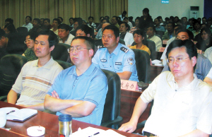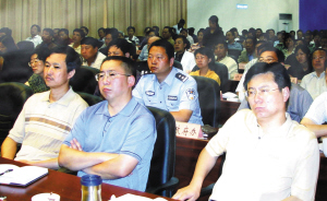 前天上午11點(diǎn),記者來到科普畫廊前,找到了市民說的“睡覺照”。這是一組關(guān)于打擊非法傳銷的宣傳資料。資料包含了云南省各地打擊非法傳銷的成績展示。在這組展示中,有一幅“打擊傳銷專項(xiàng)行動(dòng)電視電話會(huì)議”的圖片,從圖片上可以看出,這次會(huì)議是昭通市召開的。而在圖片正中間,有3人正襟危坐,中間一人雙手抱在胸前,眼睛卻是閉著的。就是這么一閉,就引來了多數(shù)市民的好奇和觀望?破债嬂忍幵谌顺奔械拇浜,經(jīng)過的市民很多,不少市民駐足在櫥窗前指指點(diǎn)點(diǎn),議論著這幅圖片。