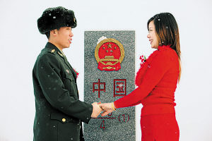 2008年12月30日,瑞雪飄飄。在祖國東極-黑龍江省撫遠(yuǎn)縣黑瞎子島,某邊防連排長郭曉明和山東姑娘孫曉麗的婚禮在哨所舉行。