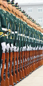 中國人民解放軍陸?杖妰x仗隊(duì)主要擔(dān)負(fù)迎送外國元首、政府首腦、軍隊(duì)高級將領(lǐng)及紀(jì)念、慶典等重大國事活動的儀仗司禮任務(wù)。禮儀是一個國家文化的精華,軍人執(zhí)行的國禮、軍禮更是一種精粹。三軍儀仗隊(duì)建隊(duì)以來,先后圓滿完成了外國首腦訪問,香港、澳門回歸政權(quán)交接儀式升國旗,奧運(yùn)會、殘奧會開閉幕式國旗升降、頒獎等3000多次儀仗司禮任務(wù),被中央軍委授予“軍旅標(biāo)兵”榮譽(yù)稱號,贏得了國內(nèi)外公眾和輿論的廣泛贊譽(yù)。朱民、劉桂利、張力攝影報道
