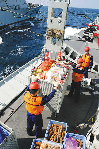 海軍艦艇護(hù)航編隊(duì)遠(yuǎn)洋航行中的生活保障是人們普遍關(guān)注的重點(diǎn)。