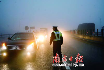 昨日,京珠高速粵北云巖段受冷空氣影響出現急劇降溫,小雨加大霧籠罩了整個高速路段,不斷上升的北上車流在雨霧中緩慢通行。京珠北韶關站、乳源站、東田站及大橋站北行入口昨天下午封閉約5小時,晚上6時左右恢復正常。昨晚19時44分,韶關樂昌發(fā)布道路結冰黃色預警信號。過往司機仍需加倍小心。