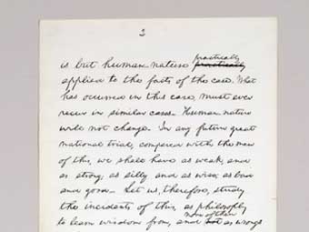 嘉士德拍賣行估計(jì)該手跡會(huì)拍出300-400萬美元,打破林肯個(gè)人文稿2002年創(chuàng)造的310萬美元記錄。嘉士德拍賣行認(rèn)為,現(xiàn)在林肯熱再次升溫多是因奧巴馬的緣故,因?yàn)閵W巴馬在總統(tǒng)競選中常常提到林肯。(梁小逸報(bào)道)
