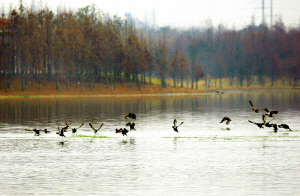 海灣國家森林公園位于奉賢區(qū)五四農(nóng)場境內(nèi),目前一期工程已完成90%,建成后將是上海規(guī)模最大的森林公園,預(yù)計(jì)年內(nèi)可試開放。公園擁有大面積接近自然生態(tài)的森林和上海最大的人工湖泊——百鳥湖。園內(nèi)種植了350多種400多萬棵樹木。圖為上午百鳥湖上野鴨飛舞 本報(bào)記者 紀(jì)海鷹 通訊員 周沅生 攝影報(bào)道