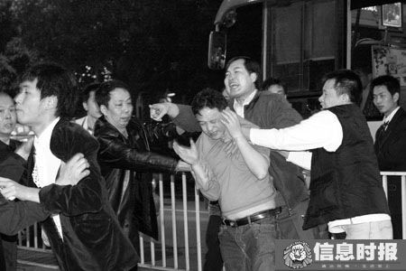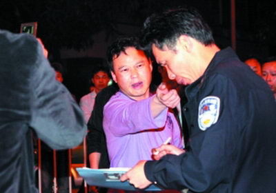 在現(xiàn)場,記者看到該名穿淺紅色衣服的男子在不停打電話,該名男子身高大概1米65左右,情緒暴躁,揮舞手臂。在接受警方調(diào)查時,該名男子忽然一拳將旁邊面包車司機的兒子陳家文打倒在地。隨后還推開前來執(zhí)勤的交警!澳銈?nèi)枂,知不知道我是誰?”該名男子向人群叫囂,現(xiàn)場一片混亂。 (信息時報)