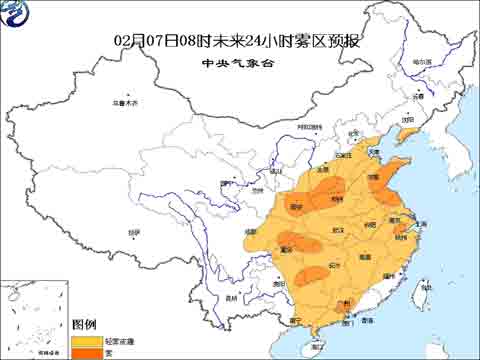 中央氣象臺(tái)今天早晨六點(diǎn)鐘繼續(xù)發(fā)布大霧預(yù)報(bào):