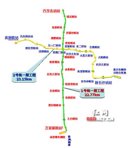 根據(jù)國家發(fā)改委批復(fù)的長沙市城市快速軌道交通近期建設(shè)規(guī)劃,2008-2015年,首先建成軌道交通1號線一期工程和2號線一期工程。