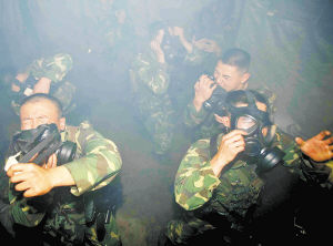 王團長告訴筆者,過去考核,毒氣常常是用煙霧來代替,有時“染毒地域”也不過是露天環(huán)境中用白灰在地上畫的一個“框”,官兵只需戴防毒面具快速通過就行。這次,他們改變了考核方式,將“染毒地域”設(shè)置在一個帳篷里,用催淚瓦斯替代了毒氣。同時規(guī)定,必須戴著防毒面具在里面呆5分鐘。王團長笑著說:“這回,誰實戰(zhàn)意識淡化,誰中招。”