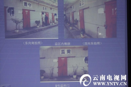 在今天上午的通報(bào)會(huì)上,晉寧縣公安局進(jìn)行了通報(bào)情況,死者李喬明,25歲,白族,死亡原因是因?yàn)橥O(jiān)舍在放風(fēng)時(shí)候玩游戲,因?yàn)樵谟螒驎r(shí)發(fā)生口角,其中一名踢了死者一腳,導(dǎo)致撞在鐵柱上,導(dǎo)致頭部受傷致死。晉寧縣公安局制作事件發(fā)生地點(diǎn)圖片,提供給調(diào)查團(tuán)一行。(來源:云南電視網(wǎng))