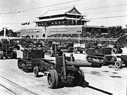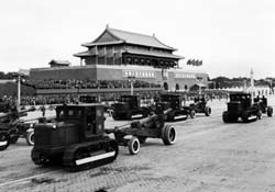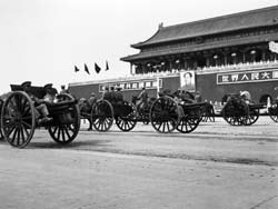 曾參與新中國(guó)多次國(guó)慶閱兵的北京軍區(qū)原炮兵司令部處長(zhǎng)張軍告訴記者,開(kāi)國(guó)大典受閱炮兵部隊(duì)裝備,全是從日本侵略軍和國(guó)民黨軍隊(duì)手里繳獲的戰(zhàn)利品,其中參加閱兵的90野炮和38野炮,不僅身管短,兩個(gè)輪子有的還是木輪子包鐵皮的。盡管當(dāng)時(shí)我軍武器裝備還很落后,但場(chǎng)面恢宏、壯觀,大氣磅礴,全體受閱將士以昂揚(yáng)精神狀態(tài)、威武雄壯陣容出現(xiàn)在國(guó)人面前,并向世界發(fā)出了宣言:中國(guó)人民解放軍有信心、有能力保衛(wèi)新生的人民政權(quán)!正因?yàn)槿绱,開(kāi)國(guó)大閱兵具有極為重要的歷史意義。