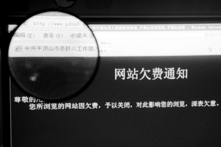 讓他感覺不可思議的是,網(wǎng)站頁面紅底白字寫著一則欠費(fèi)通知:“尊敬的用戶:您所瀏覽的網(wǎng)站因欠費(fèi),予以關(guān)閉,對此影響您的瀏覽,深表欠(歉)意”,落款日期為2008年12月。