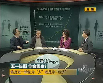 劉思敏:如果有證據(jù)證明,全中國就只有蔡教授最聰明,這個結(jié)論就成立。為什么呢?因為我們不否認(rèn),盡管現(xiàn)在有些人說,希望否認(rèn)當(dāng)初設(shè)立黃金周是為了拉動內(nèi)需。我覺得根據(jù)我的研究,當(dāng)初的最初目的就是為了拉動內(nèi)需。那個時候是1999年亞洲金融危機的時候,我們的確把黃金周作為一個工具使用了,那個時候是全國的共識,至少是國務(wù)院的共識,否則不會這么實行,F(xiàn)在在全球性的金融海嘯的背景下,全國那么多人士提出恢復(fù)五一黃金周,那么多省份,包括黃華華省長也提出,而且認(rèn)識到對拉動經(jīng)濟的作用。