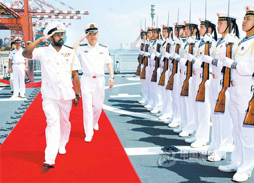 赴巴基斯坦參加“和平-09”海上多國聯(lián)合軍事演習(xí)的“廣州”號導(dǎo)彈驅(qū)逐艦今天?克估锾m卡科倫坡港,進行第二次補給。