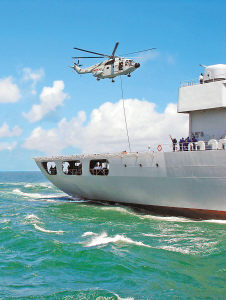 同時(shí),這種訓(xùn)法也是對(duì)各專(zhuān)業(yè)官兵協(xié)同能力的鍛煉。對(duì)此,艦長(zhǎng)陳德楠深有感觸:“軍艦各部門(mén)各專(zhuān)業(yè)隔行如隔山,盡管官兵同舟共濟(jì),但輪機(jī)長(zhǎng)和軍醫(yī)的專(zhuān)業(yè)卻風(fēng)馬牛不相及,也沒(méi)法在一塊訓(xùn),F(xiàn)在呢……”善于打比方的陳德楠這樣告訴記者:“模塊化組訓(xùn)就像中西樂(lè)隊(duì)大排練,拉二胡的和彈鋼琴的演奏的是同一個(gè)譜子!