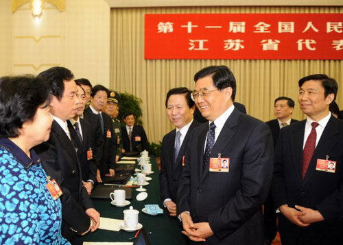 胡錦濤當(dāng)天下午來(lái)到他所在的江蘇代表團(tuán),在聽(tīng)取了九位代表的發(fā)言后,胡錦濤表示,當(dāng)前的國(guó)際國(guó)內(nèi)形勢(shì)可以用兩句話(huà)來(lái)概括,一句話(huà)是挑戰(zhàn)確實(shí)嚴(yán)峻,再一句話(huà)是機(jī)遇依然存在。要進(jìn)一步落實(shí)中央宏觀調(diào)控政策措施,切實(shí)做好擴(kuò)內(nèi)需、保增長(zhǎng),調(diào)結(jié)構(gòu)、上水平,抓改革、增活力各項(xiàng)工作,在應(yīng)對(duì)挑戰(zhàn)中開(kāi)創(chuàng)新局面,在克服困難中實(shí)現(xiàn)新發(fā)展。