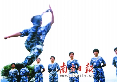 記者采訪了解到,該部隊組建伊始,是一個由醫(yī)院護士,總機班女兵,演出隊女兵拼湊起來的“雜牌”軍。自從該旅提出要把女兵隊由表演隊鍛造成戰(zhàn)斗隊后,這群女兵便開始了新的征程。五公里、戰(zhàn)術、障礙等訓練科目一個不落,舞劍、捕獲等特色科目齊頭并進,就連男兵很少練齊全的陸上駕駛、海上駕舟、空中突降等特種科目也全納入了她們的訓練內(nèi)容。