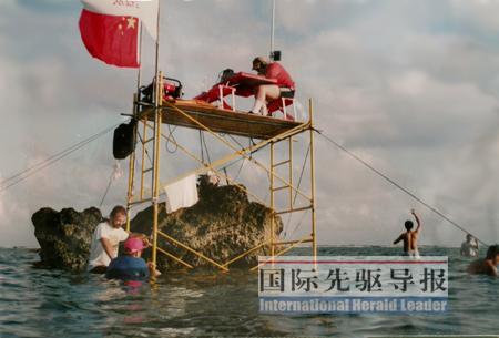 在遠征隊員的嚴正聲明后,菲律賓海軍并不死心,一艘橡皮艇始終圍著架設了無線電平臺的礁石轉悠,想伺機登島。但眼看“偷襲”無望,一個士兵謊稱橡皮艇的發(fā)動機出現(xiàn)故障,需要靠在礁石上修理,還是被中國人堅決拒絕。菲律賓海軍自討沒趣后,將橡皮艇?吭谝粔K離遠征隊員不遠處只有板凳大小的礁石旁,并將菲律賓國旗插在橡皮艇和礁石的中間。