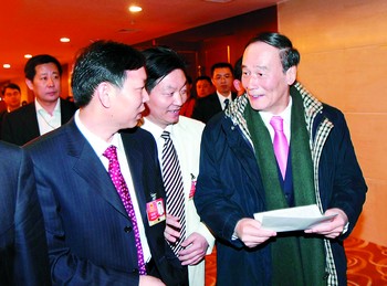 昨日下午4時許,王岐山參加完湖南代表團的討論后,黃志明將準備已久的《關于成立國有社保銀行的建議》交到王岐山的手中!斑@是我一個基層代表的建議,希望對國家有所幫助,并請多多指導!”黃志明激動地說。“謝謝你,我會認真看的!蓖踽浇舆^黃志明的建議笑著表示。