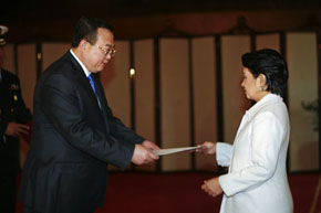 中新網(wǎng)3月12日電 據(jù)外交部網(wǎng)站消息,3月11日,中國新任駐菲律賓特命全權(quán)大使劉建超在菲律賓總統(tǒng)府向阿羅約總統(tǒng)遞交國書。菲律賓外交部長羅慕洛、總統(tǒng)府禮賓局局長桑托斯、中國駐菲律賓使館高級外交官等參加。