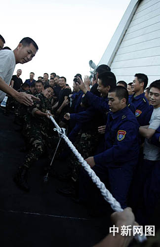 中新網(wǎng)“?凇迸3月19日電 (記者 孫自法) 3月中旬,為豐富廣大護(hù)航官兵業(yè)余生活,中國(guó)海軍艦艇編隊(duì)“?凇碧(hào)導(dǎo)彈驅(qū)逐艦在護(hù)航之余組織舉辦第二屆甲板運(yùn)動(dòng)會(huì),艦上官兵積極參與,各類比賽、訓(xùn)練項(xiàng)目精彩紛呈。編隊(duì)三亞起航遠(yuǎn)赴亞丁灣、索馬里海域執(zhí)行護(hù)航任務(wù)近三個(gè)月來(lái),廣大護(hù)航官兵身心狀態(tài)良好、士氣昂揚(yáng)。