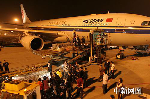 中新社成都三月二十二日電(包力達(dá) 楊杰 金朝陽)二十二日晚二十時(shí)三十五分,經(jīng)過兩個(gè)半小時(shí)的飛行,運(yùn)載著八只“奧運(yùn)熊貓”的國(guó)航CA四一0四航班平穩(wěn)降落在成都雙流機(jī)場(chǎng)。隨后,工作人員將它們裝上專用貨車,連夜向中國(guó)保護(hù)大熊貓研究中心雅安碧峰峽基地駛?cè)。于兩個(gè)多小時(shí)后到達(dá)震后新家。