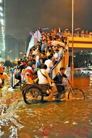 見聞:坐在車上,異味很重,幾個(gè)乘客把濕鞋脫下來晾。有人大聲講電話:“我已經(jīng)坐了兩個(gè)小時(shí)了,才到華景路口。要不明天再走?”司機(jī)不時(shí)地打開車門,讓熬不住的人下車。
