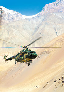 天山山谷,數(shù)十架直升機(jī)鐵翼飛旋,巨大的轟鳴聲幾乎要把耳膜撕裂。駕駛艙內(nèi),機(jī)長王厚國在地圖上隨機(jī)標(biāo)定了此次飛行訓(xùn)練的第一個(gè)野外起降點(diǎn)。他說:“過去組織野外起降課目訓(xùn)練前,都要事先勘察選點(diǎn),在易于起降的場地上插上紅旗,再告知精確的經(jīng)緯度,飛行員據(jù)此就可以飛抵起降地點(diǎn)。如今,新大綱打破了這個(gè)規(guī)矩,既不事先選點(diǎn)也不做任何標(biāo)記,讓飛行員獨(dú)立搜索選擇起降點(diǎn)!闭f著,飛機(jī)抵達(dá)山谷深處一個(gè)陌生地域,巨大的旋翼卷起狂風(fēng),吹得積雪四處飛濺。片刻,直升機(jī)再次騰空而起,實(shí)施第二個(gè)訓(xùn)練課目:超低空突襲。