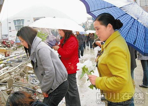 昨(1)日,北川縣陰雨綿綿,北川縣法院40名干警來到北川老縣城,祭奠在去年地震中遇難的30名干警。大家把鮮花擺在廢墟旁,在靜默中向逝去的戰(zhàn)友表示哀思,并決心以更加勤奮的工作緬懷戰(zhàn)友。