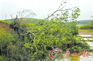 昨日凌晨,河源市東源縣順天鎮(zhèn)楓木、橫塘等5個山村不同程度地遭受到龍卷風(fēng)、冰雹的突然襲擊,導(dǎo)致當(dāng)?shù)卮笃r(nóng)田受災(zāi),數(shù)千株板栗樹被龍卷風(fēng)摧倒,據(jù)當(dāng)?shù)叵嚓P(guān)部門昨日下午統(tǒng)計,直接經(jīng)濟損失估計逾達860多萬元,所幸未造成人員傷亡。