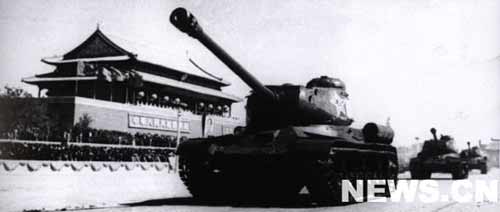 隨后,騎兵部隊(duì)過來了。在騎兵部隊(duì)的后面,防空部隊(duì)過來了,牽引炮兵部隊(duì)過來了,摩托化步兵過來了,裝甲兵部隊(duì)過來了。他們操縱著全世界第一流的武器。各種口徑的大炮和各種輕重型坦克,構(gòu)成一個(gè)鋼鐵的巨流,在檢閱臺(tái)前走過。