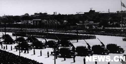 閱兵歷時(shí)五十分鐘結(jié)束,接著開始了六十萬人的群眾大游行。