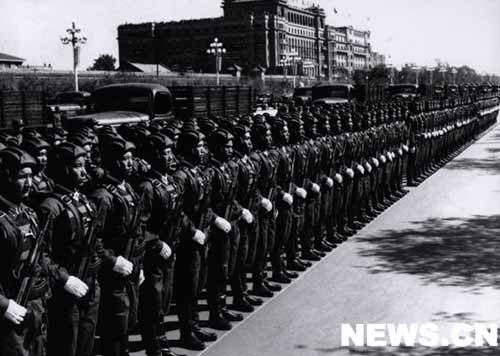 我們偉大祖國萬里海疆的保衛(wèi)者--海軍軍官和水兵們列隊通過天安門廣場。他們當(dāng)中,有擊沉、擊傷敵艦船一百多艘、俘獲五十艘的東海艦隊水兵;還有來自福建前線的水兵,他們在去年秋天的兩個月里,曾把二十多艘蔣軍艦艇埋葬在臺灣海峽。我們祖國"有海無防"的時代一去不復(fù)返了。人民海軍已經(jīng)是一支擁有大量水面艦艇、水下潛艇和海軍航空兵、海岸炮兵等各兵種組成的堅強(qiáng)的海防力量。