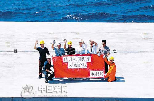 當(dāng)?shù)貢r(shí)間4月21日6時(shí),海軍第二批護(hù)航編隊(duì)開始中國(guó)海軍在亞丁灣、索馬里海域的第44批護(hù)航。接受護(hù)航的船舶通過不同形式表達(dá)對(duì)偉大祖國(guó)和護(hù)航海軍的感謝。本報(bào)記者夏洪平、通訊員駱源攝影報(bào)道