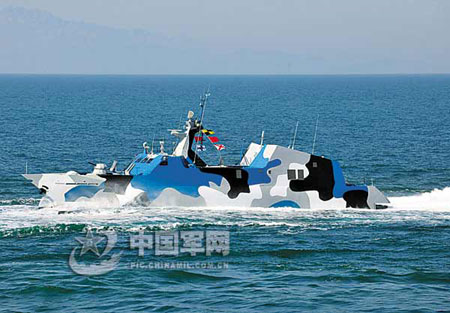 某新型導(dǎo)彈快艇設(shè)計獨特,配備先進導(dǎo)彈和抗電磁干擾系統(tǒng),2004年首次露面,立刻引起了國內(nèi)外軍事專家的廣泛關(guān)注。該新型導(dǎo)彈快艇個頭雖小,但集高速、強大的火力和出色的隱身能力于一體,已經(jīng)成了我海軍在近海海域?qū)Ω锻鈦頂橙送{的“撒手锏”兵器。