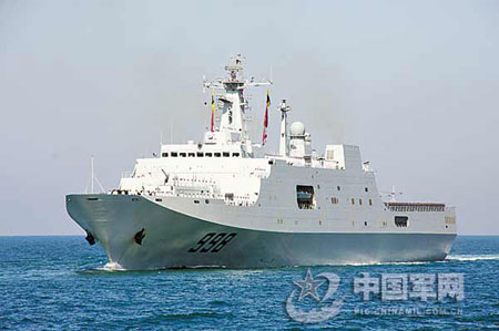 “昆侖山”艦,舷號998,是我國自主研制的兩棲船塢登陸艦,總長210米,最大寬度28米,正常排水量18500噸,是我國目前噸位最大的水面作戰(zhàn)艦艇。該艦的服役填補了我國國內(nèi)兩棲船塢登陸艦的空白,更新了我軍傳統(tǒng)登陸作戰(zhàn)理念,標(biāo)志著我海軍在中遠海投送兩棲作戰(zhàn)兵力的能力有了較大程度的提升。據(jù)了解,此次海上閱兵,該艦搭載了數(shù)百名海軍陸戰(zhàn)隊員。