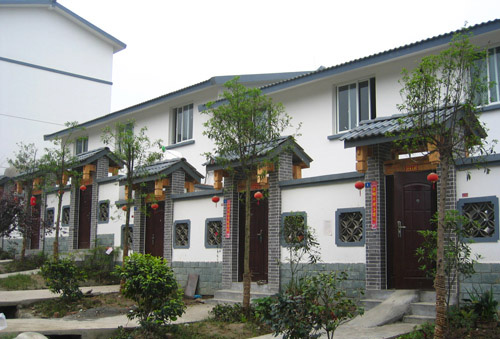 中新網(wǎng)5月7日電(記者 吳翔) 站在四川省都江堰市向峨鄉(xiāng)棋盤村中,你很難相信這是一個“5.12”地震災民安置點。淡色的三層小樓在道路兩旁一字排開,從外面看就像地產(chǎn)廣告里的聯(lián)排別墅。村口是寬闊的停車場,離村不遠處正在修建休閑中心。安置點里種滿花草,還設有警務室、醫(yī)務室、小賣部等配套設施,附近的小學也在修建當中。1519人、492戶村民已搬入其中。